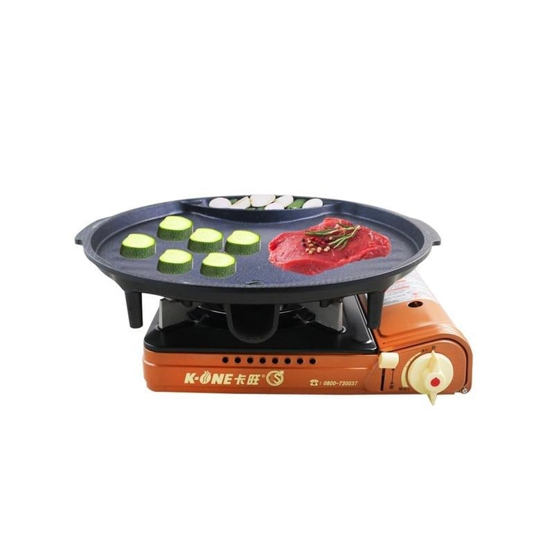 卡旺 K1-A001D 雙安全卡式爐+韓國不沾排油烤盤 SM-6 R99N