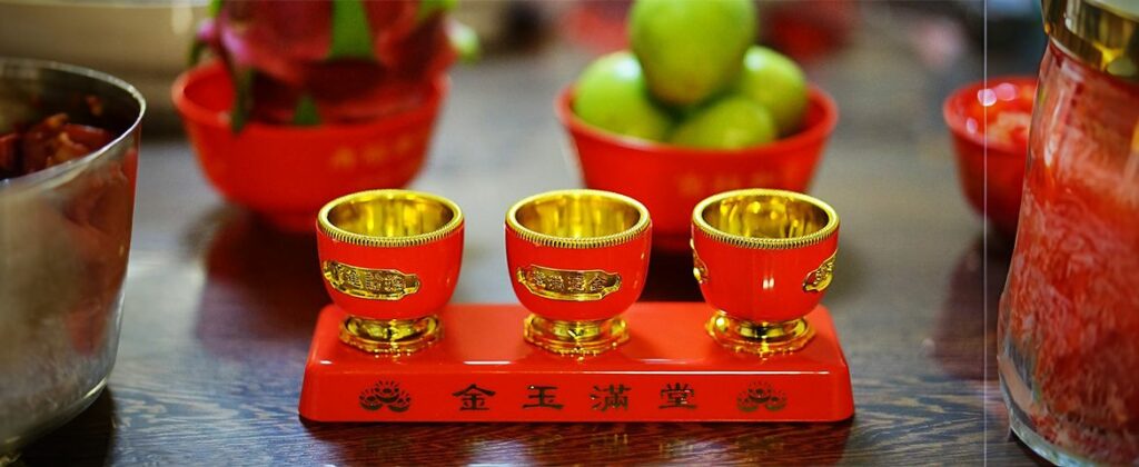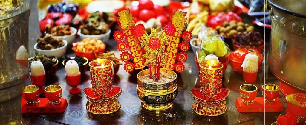 供品:水果(香蕉、水梨、李子、鳳梨等)、甜品、茶水或酒水等