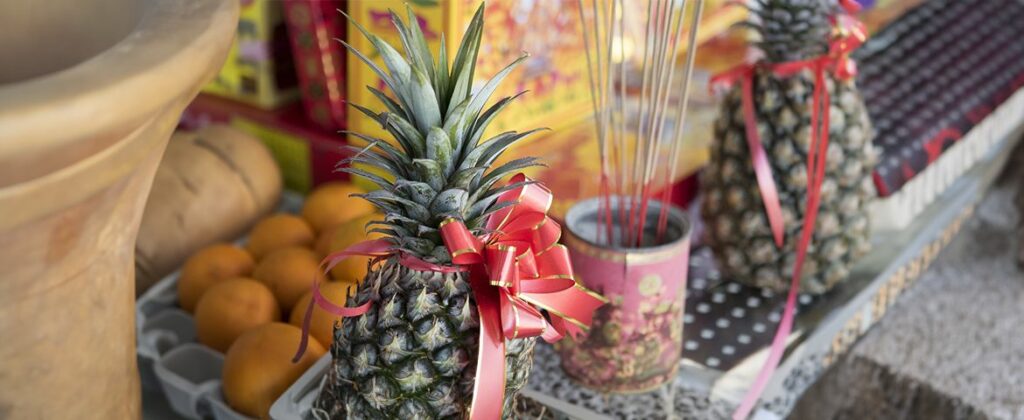 供品:僅能擺放素食供品,建議挑選五種水果(鳳梨、蘋果、李子、香蕉、柑、橘等任選五樣)。