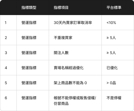 加入平台營銷促進方案,且每期服務及營運指標達成,即可維持心選資格。