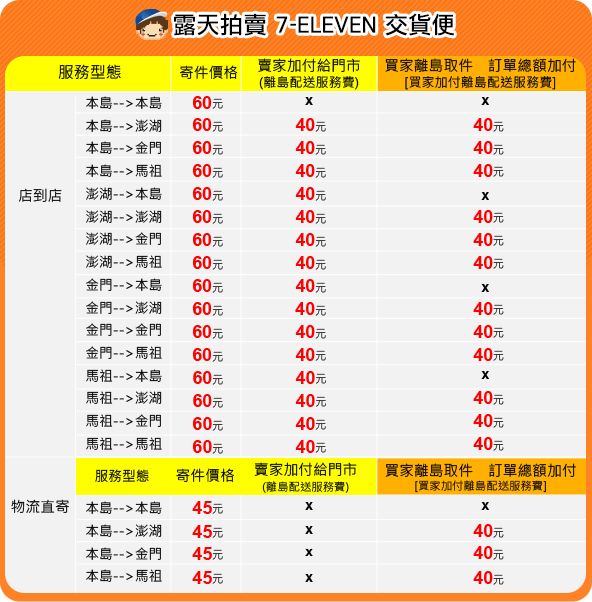 - 買家須於貨到門市7天內取貨,若逾期未領,門市交寄商品將退回賣家所指定的退件門市,賣家免支付退貨費用。(優惠期間賣家免支付退貨費用)
