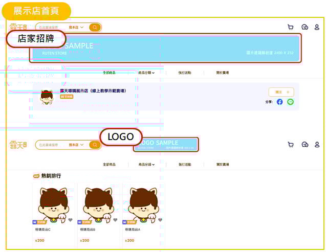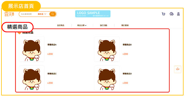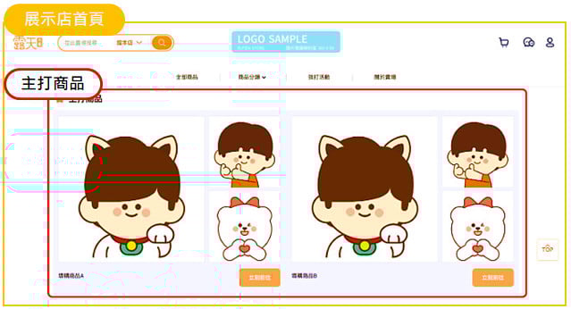 - 更多展示店首頁佈置完整功能請參考賣場佈置工具操作方式