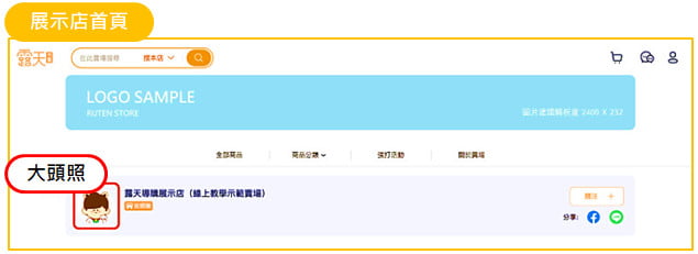 - 更換大頭照請參考賣場佈置工具 – 賣場資訊