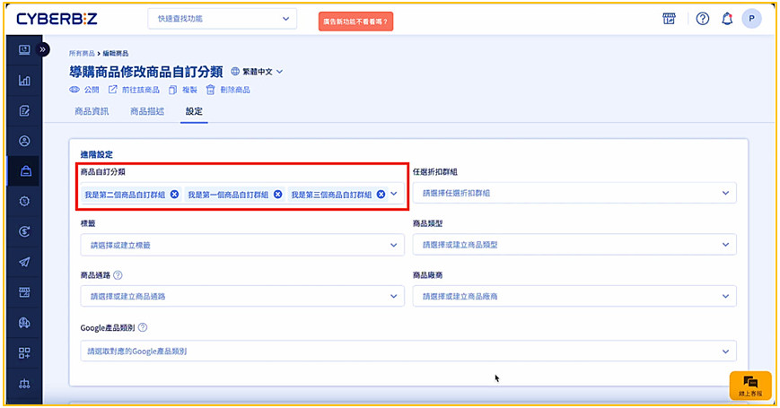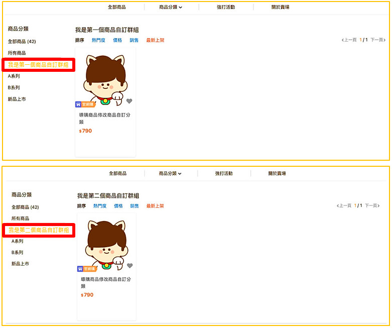- 就可以讓「我是第一個商品自訂群組」跑到最前面