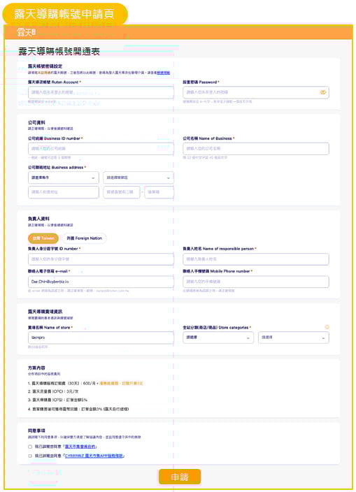 - 法人會員認證:為確保展示店廣告商品的品質及主管機關規範,露天將審查您提供的公司資料。審查資料在申請帳號時就填寫完成,不需要額外提供。