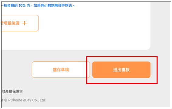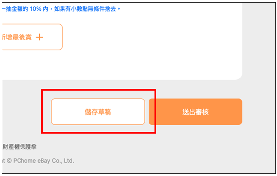 ※ 只有「小賞」才可設定讓消費者換回露天點數,限制為一抽金額的 10%內,如有小數點無條件捨去。