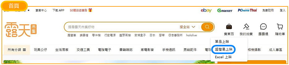 Step 1 – 請登入後點選首頁右上方【賣東西】【超簡易上架】