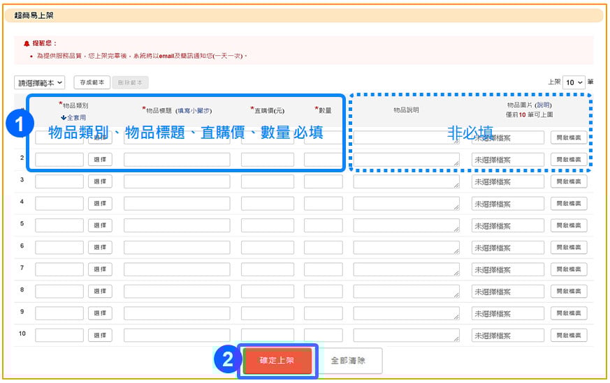 • 可將物品資料儲存起來,下次上架時可選用範本進行編輯,減少上架時間。