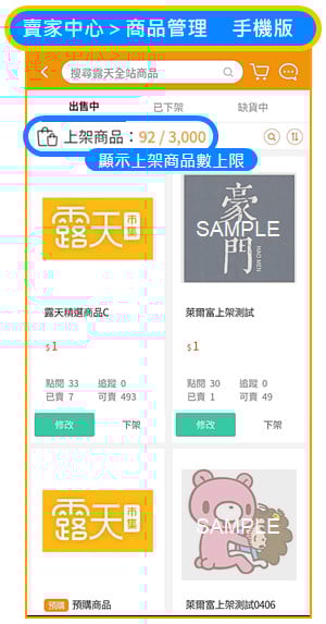 可前往商品管理>出售中即可查看目前賣場上架的數量限制。