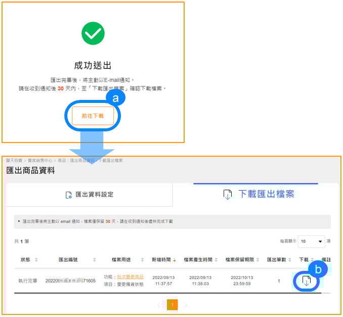成功匯出後,在下載匯出檔案進行點擊「下載」。