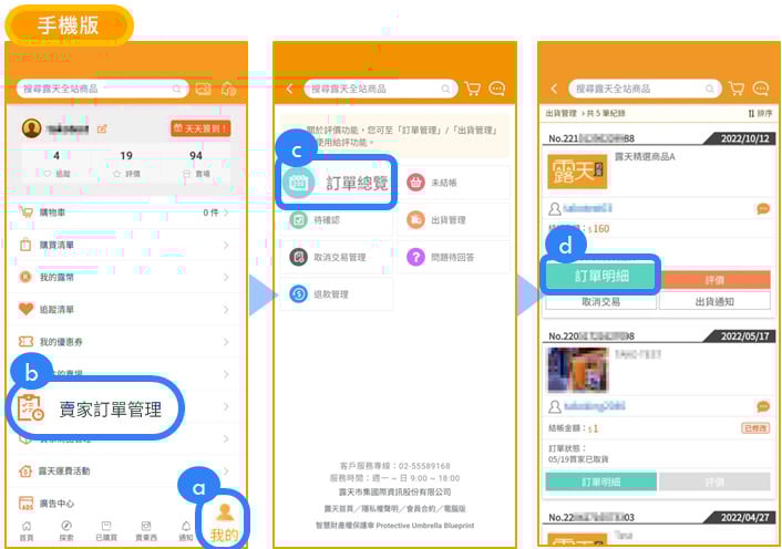 (如重新結帳、 7 日內提出取消交易、賣家出貨…等)