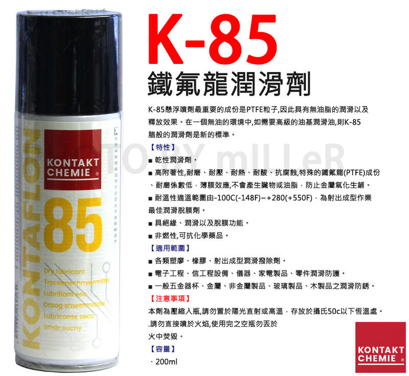 【含稅-可統編】德國 康泰 KONTAKT K-85 【200ml】鐵氟龍乾性潤滑劑 乾性潤滑油 不油膩