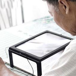 【帶燈A4放大鏡】 3倍 手機螢幕放大器 中老年人閱讀放大鏡 可掛脖可折疊 桌面放大鏡 看書報雜誌繡花縫紉菲涅爾透鏡