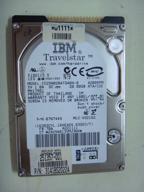 IBM IC25N020ATDA04-0/20GB/2.5吋/IDE