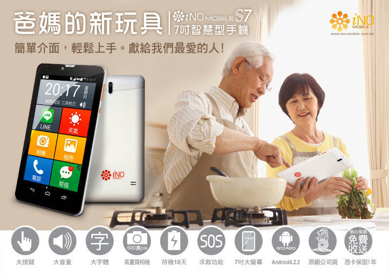 新版送皮套 記憶卡 iNO S7 7吋 雙卡 雙核心大字體 智慧型手機 老人機 銀髮族 小孩機 孝親機