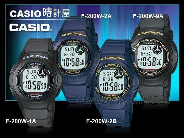 CASIO 時計屋 卡西歐手錶 F-200W 電子錶 鬧鈴 碼錶 全新 保固一年 附發票