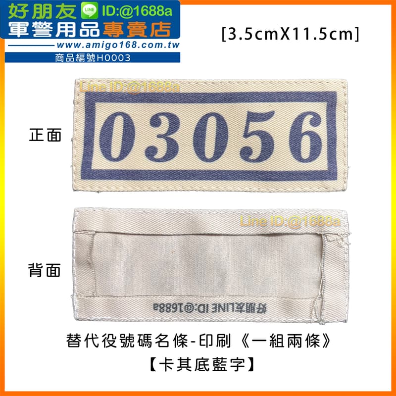 【成功嶺好朋友】☆★替代役號碼名條-印刷《一組兩條》【卡其底藍字】☆★替代役名條☆★號碼名條☆★替代役號碼牌☆★