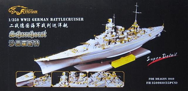 鷹翔 FH350068 1/350 二戰德軍 "沙恩霍斯特號" 戰列巡洋艦 蝕刻片改裝套件 (25片 含金屬炮管)(配Dragon 威龍)