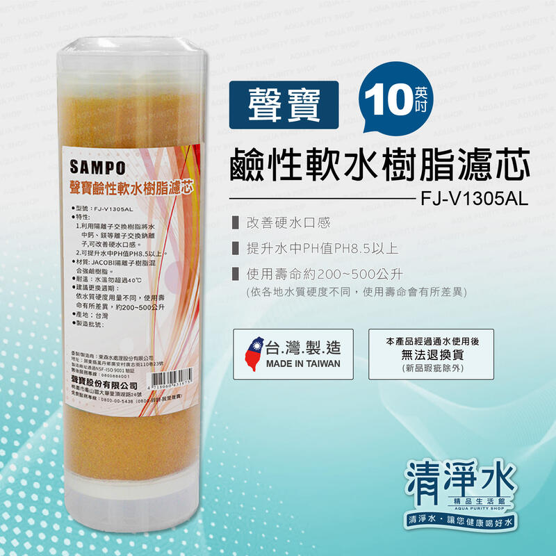 SAMPO 聲寶鹼性軟水樹脂濾芯 FJ-V1305AL /  RO機 淨水器 10英吋 濾心【清淨水精品生活館】