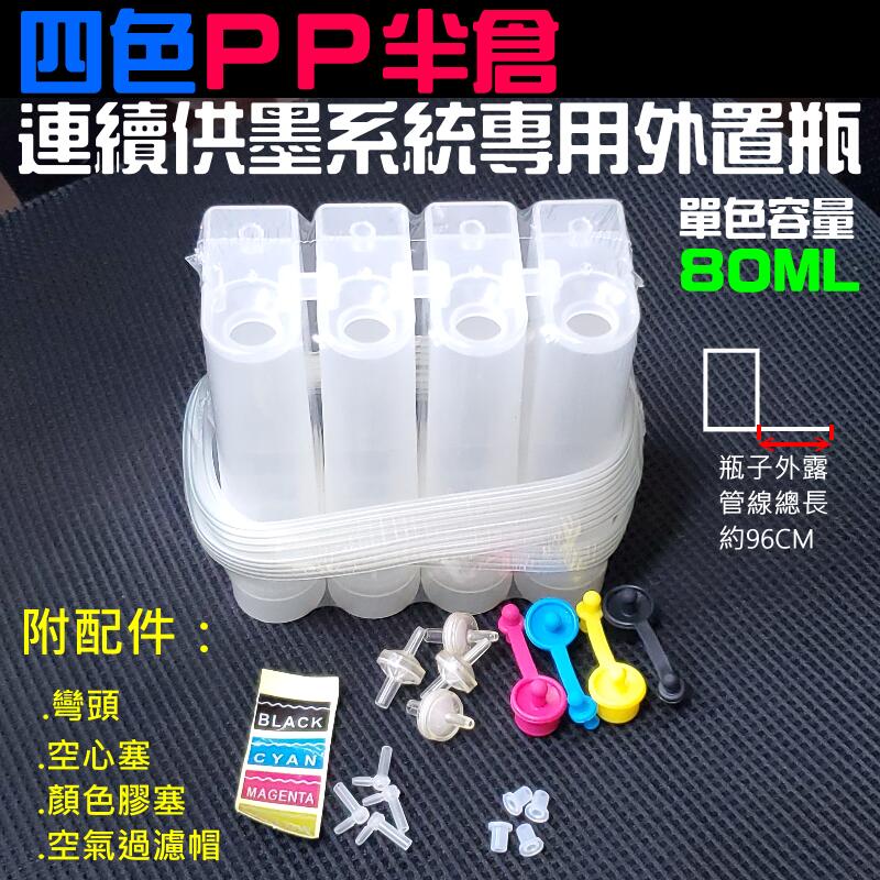 【創達科技】四色PP半倉連續供墨系統專用外置瓶(附配件:彎頭+空心塞+顏色膠塞+空氣過濾帽)#適用各機種連供改裝使用