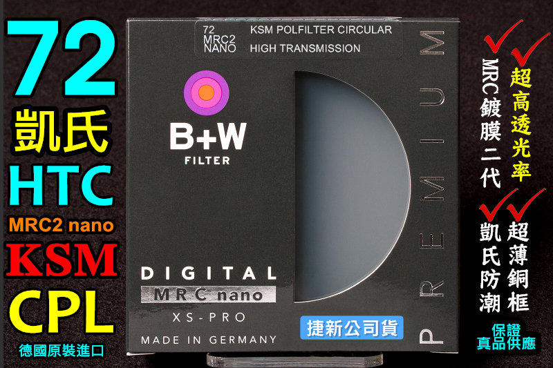 [ BW濾鏡達人] 全新 B+W 72mm XS-PRO HTC-PL MRC2 KSM 高透光超薄凱氏偏光鏡CPL公司
