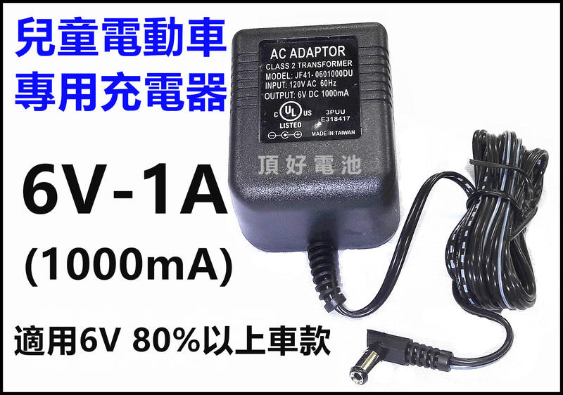 頂好電池-台中 臺灣製 衝的快 6V 1A 兒童電動車專用充電器~圓形接頭可適用 M