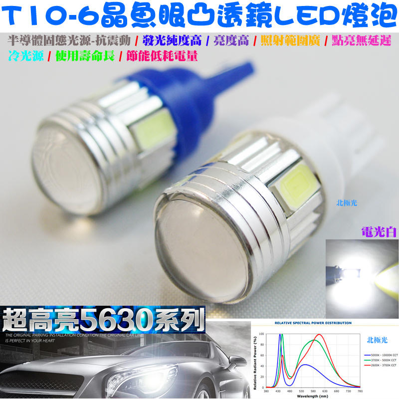 【日安】T10-6晶 5W魚眼凸透鏡LED燈泡~汽車機車小燈牌照燈示寬燈煞車燈插泡燈日行燈方向燈定位燈倒車燈車廂燈用