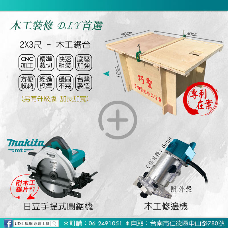 @UD工具網@ DIY首選 巧聖專利木工鋸台2*3木工工作台+牧田圓鋸機+木工修邊機 木工裝潢 非新巨 神佢