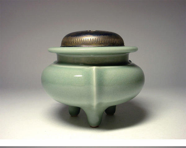 【新月集】日本藝術院會員陶藝名匠『三代井上良斎』晩年作品~青瓷袴腰香爐(銀蓋)