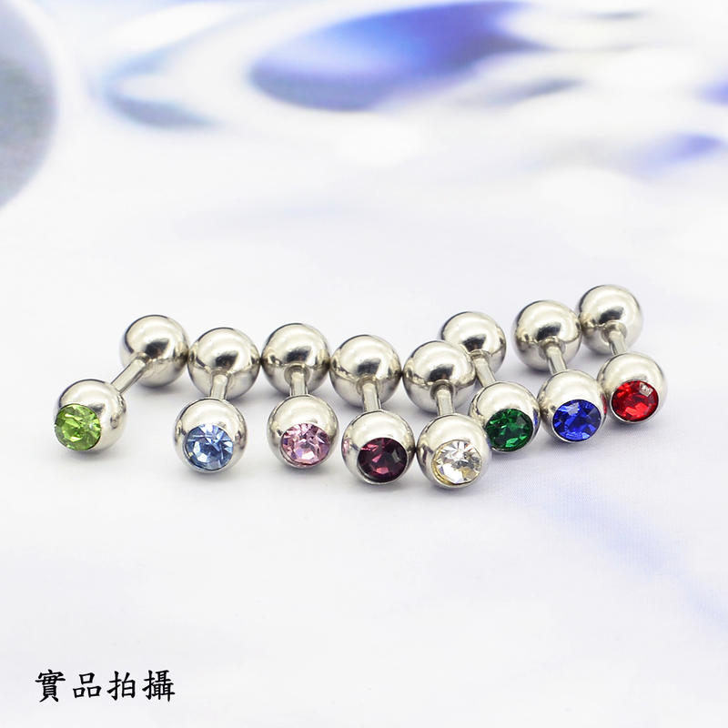 ★鑫飾品★B1653【8色_圓球閃鑽 啞鈴耳環】耳骨釘 鈦鋼 防過敏 中性款 BigBang 允浩 在中 基本款耳釘