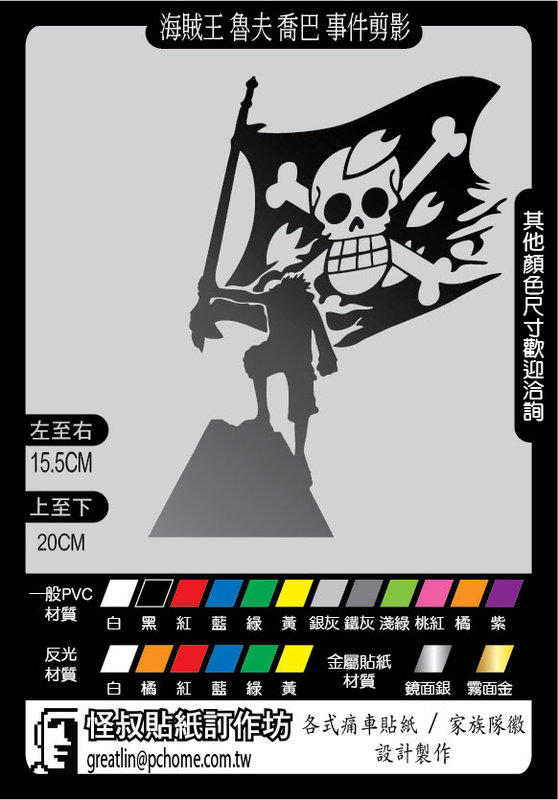 怪叔貼紙訂作坊 電腦割字 汽車貼紙 機車貼紙 海賊王 魯夫 喬巴 事件剪影