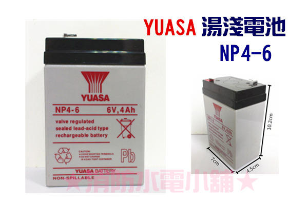★消防水電小舖★ YUASA 湯淺 鉛酸電池 6V4AH  NP4-6 緊急照明燈 手電筒 兒童電動車 專用