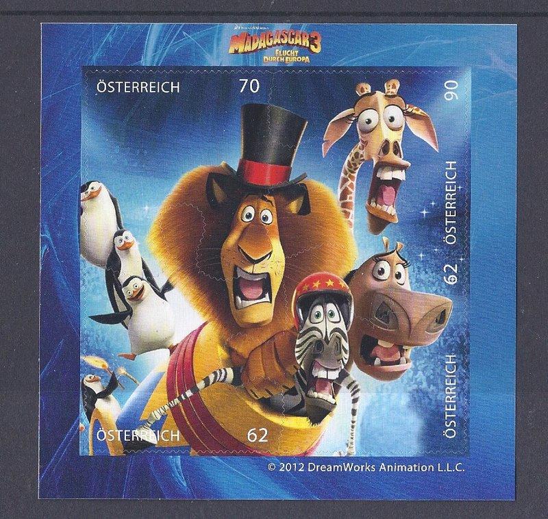 2012年奧地利動畫-馬達加斯加3自黏郵票小全張(拼圖)