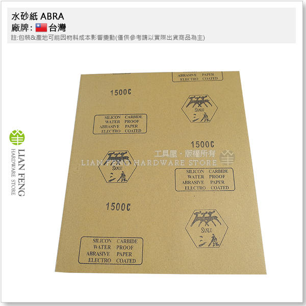 【工具屋】*含稅* 水砂紙 ABRA #1500 耐水研磨紙 補土研磨 噴漆 水磨 鏡面模型 玉石 打磨1500番