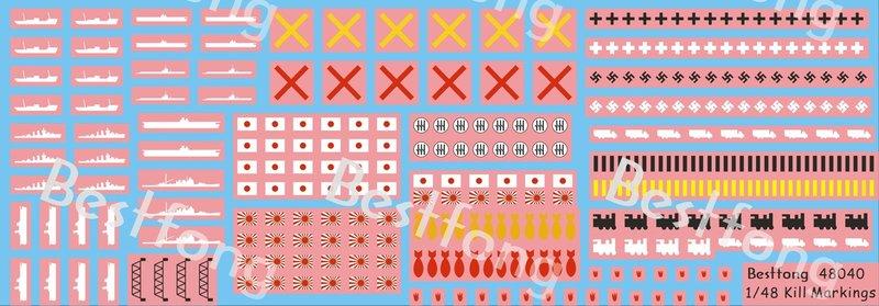 1/48Bestfong水貼紙~30多種二戰盟軍(含國軍)通用擊墜/投彈/擊沉/擊毀標誌
