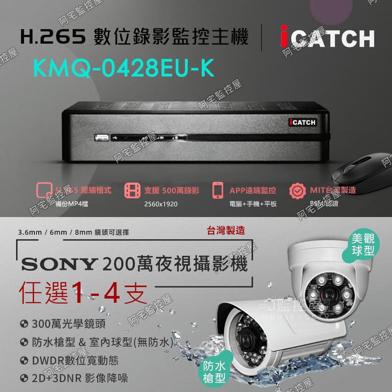 【監控屋〡iCATCH 可取】4路套裝(1~4支鏡頭)監控主機|WD硬碟|SONY 1080P夜視攝影機|遠端|監視器