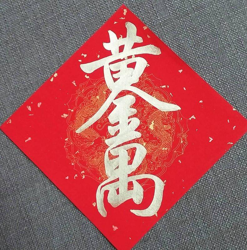 【翰墨書軒】手寫春聯─組合字─黃金萬兩(金字)