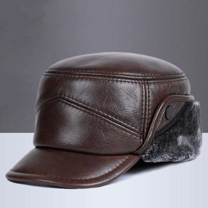 ~皮皮創~英倫風帥氣個性百搭經典款純手工頭層牛皮保暖飛行帽平頂軍帽反折護耳帽真皮滑雪帽