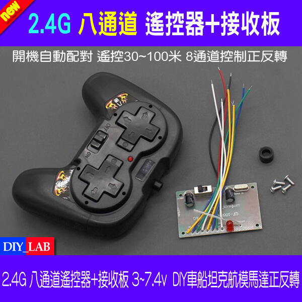 【DIY_LAB#98】2.4G 8八通道遙控器帶接收板 3~7.4v DIY玩具車船坦克車航模電機馬達正反轉控制器