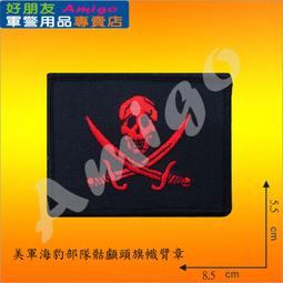 【成功嶺好朋友】☆★美軍海豹部隊骷顱頭旗幟臂章-紅☆★旗幟徽章☆★美軍臂章☆★USA臂章☆★海豹部隊☆★軍用品