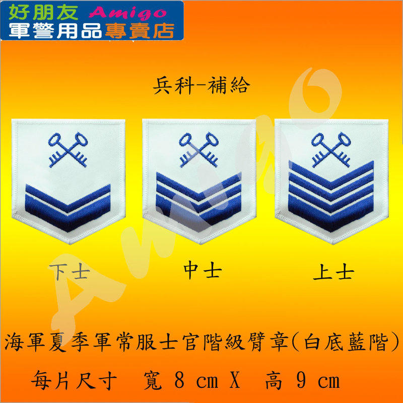【成功嶺好朋友】☆★海軍夏季軍常服士官階級臂章(白底藍階)【兵科:補給】☆★海軍臂章☆★士官臂章☆★軍用品
