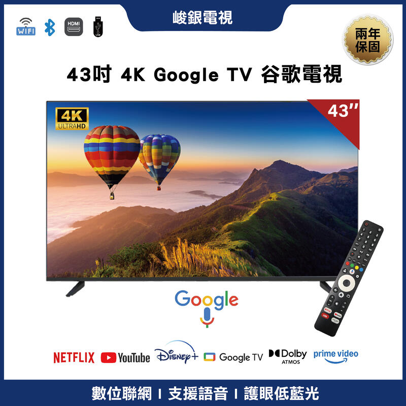【峻銀電視 兩年保固】43吋液晶電視 採用LG/友達面板 四核心無邊框 高清數位聯網 4K谷歌