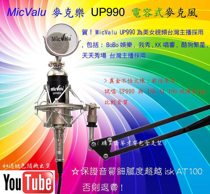 MicValu麥克樂 UP990震動音頭電容式麥克風保證音質超越isk AT100否則退費送166種音效軟體