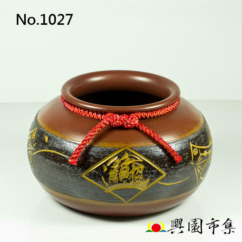 【興園市集】陶瓷聚寶盆 花器 手拉坯 手拉坏 手拉胚 送禮 招財進寶 元寶魚 台灣鶯歌手工製造 No.1027