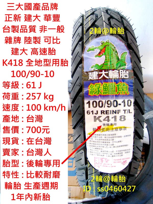 台灣製造 建大 K418 100/90-10 90/90-10 3.50-10 350-10 耐磨 輪胎 高速胎