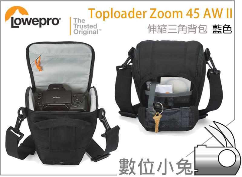 數位小兔【Lowepro Toploader Zoom 45 AW II 伸縮三角背包 藍色】側背相機包 槍套