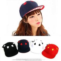 韓國最新流行 撲克牌電繡四色花樣設計棒球帽 嘻哈帽 平沿帽子 K337