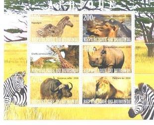 ★熊熊購物★025BURUNDI布隆迪郵票-2009年 非洲野生動物郵票(四) 犀牛斑馬長頸鹿野牛獅子河馬 小全張