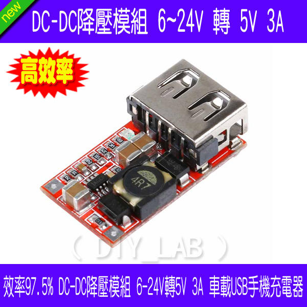 【DIY_LAB#2237A】(2個) 效率97.5% DC-DC降壓模組 6~24V轉5V3A 車載USB手機充電器