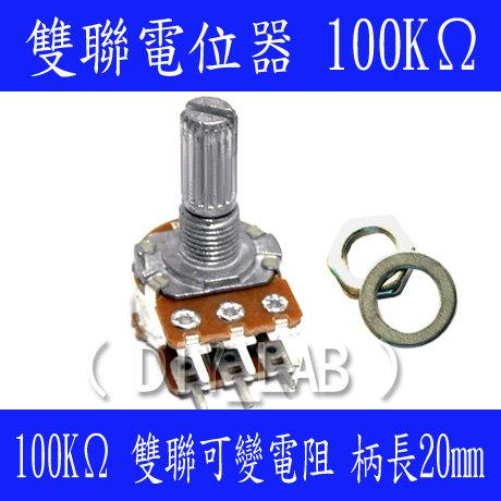 【DIY_LAB#1067】雙聯電位器 100K B100K 6腳 柄長20mm(長柄) 附螺絲墊片 雙聯可變電阻(現貨